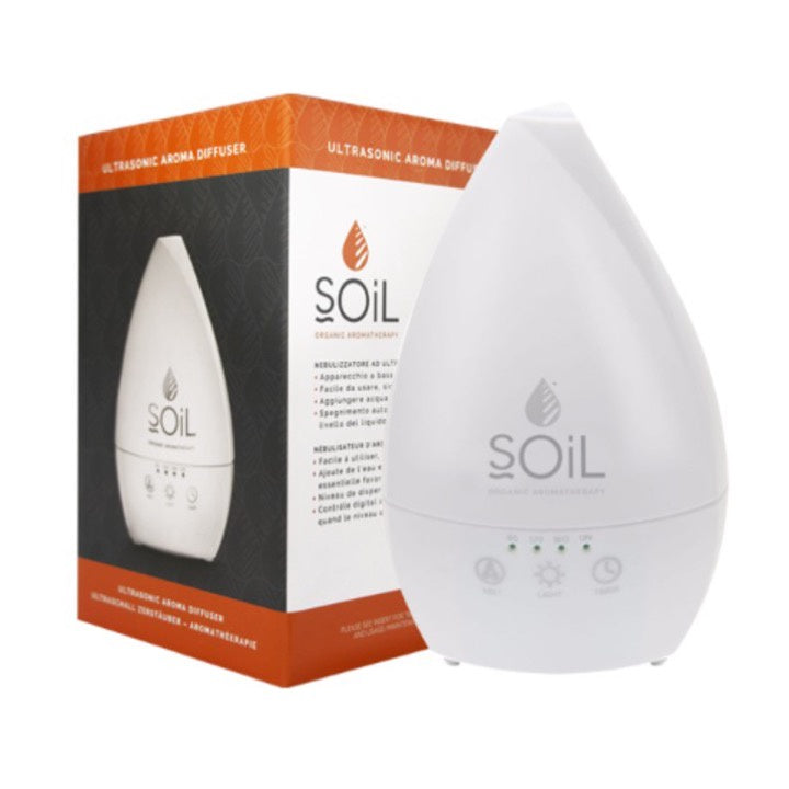 With a unique and stylish shape, this is one of Soil's most popular mist diffusers in store, Low on energy, this diffuser uses water and ultrasonic vibrations to disperse the molecules of the essential oil into the air via a light, fine mist,