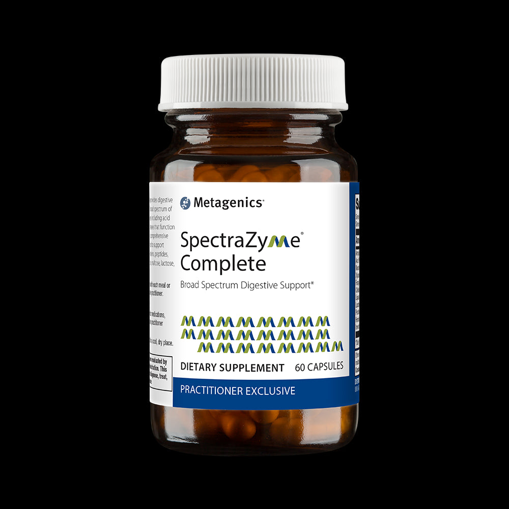 SpectraZyme Complete provides digestive support with a non-GMO, broad spectrum of non-animal derived enzymes including acid stable lipase and three proteases that function in different pH ranges,