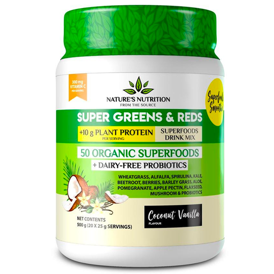 Get your daily dose of 50 superfoods in a smooth Coconut Vanilla flavour, Each delicious serving of this green blend provides 10 grams of plant protein and added vitamin C with only 75 calories, This whole food blend of fruits, vegetables, probiotics and greens provides a wealth of nutrients and overall health benefits without an artificialor processed ingredient in sight, Say hello to convenient, tasty superfoods and plant protein – and a healthier you – with every sip,