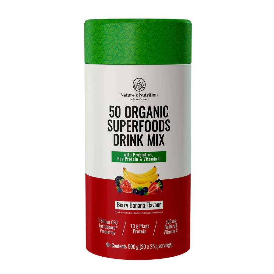 50 Organic Superfoods Drink Mix - Berry Banana 500g