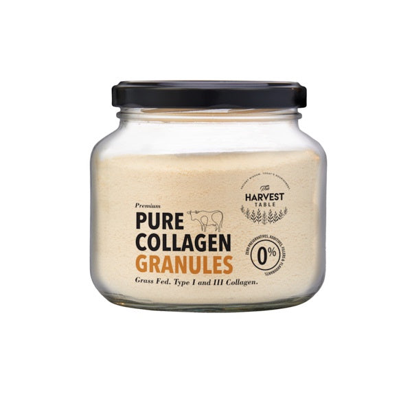 The Harvest Table Collagen Granules are Grass-Fed and 100% pure products containing no additives, preservatives or fillers, The flavour of the Collagen Granules is naturally neutral and this product will therefore suit people who prefer a neutral taste,