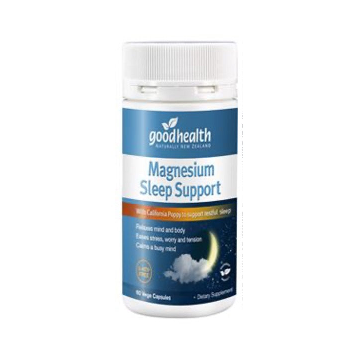 Good Health Magnesium Sleep Support contains easy-to-absorb forms of magnesium for fast acting relaxation and sleep support,
