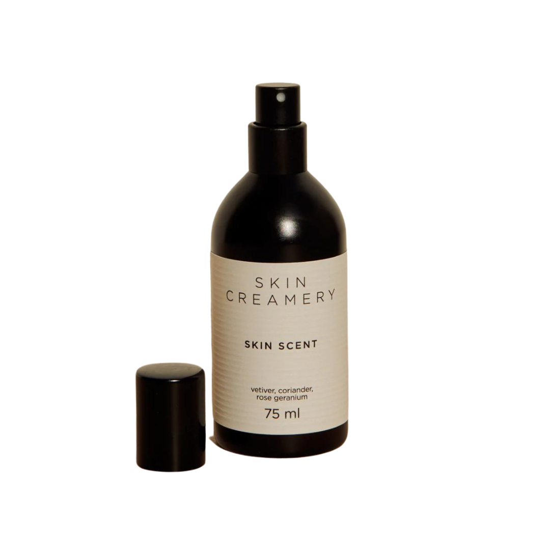 Inspired by aromachology, Skin Scent captures your unique aura with a contrasting blend of earthy, citrus, and spicy notes, Vetiver, lime, and coriander soften into a milky rose to subtly amplify your natural essence,